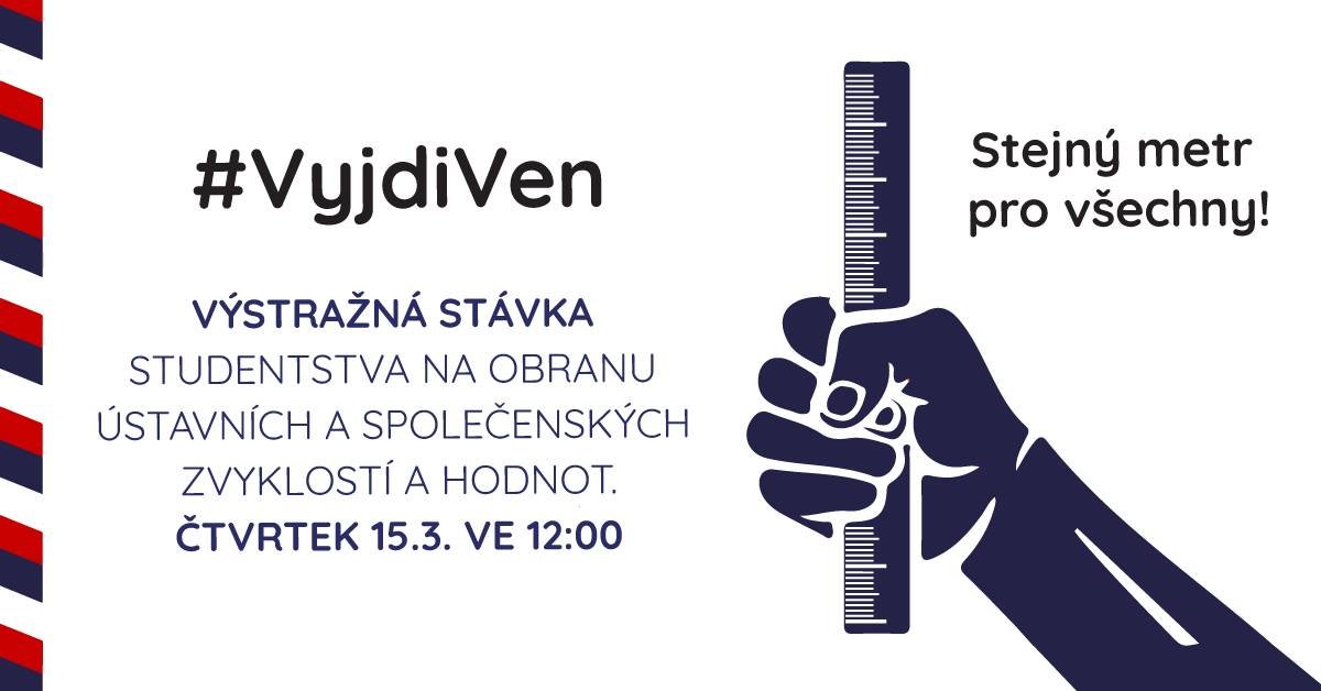 Ve čtvrtek 15. března proběhne na několika místech po celé ČR studentská protestní akce #VyjdiVen a Piráti ze Zlínského kraje tuto iniciativu mladých plně podporují. Akce proběhne také na několika místech ve Zlínském kraji (oficiální událost najdete ZDE{:target="_blank"}).